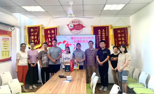 8月31日下午,中国科学院上海光学精密机械研究所与菊园新区嘉宏社区困难学生结对助学仪式在嘉宏社区会议室举行。嘉宏社区党支部书记李洁,上海光机所强场激光物理国家重点实验室党总支副书记王成、信息光学与光电技术实验室党总支组织委员李思坤、党委办公室党务主管赵纯等参加了结对助学仪式。
