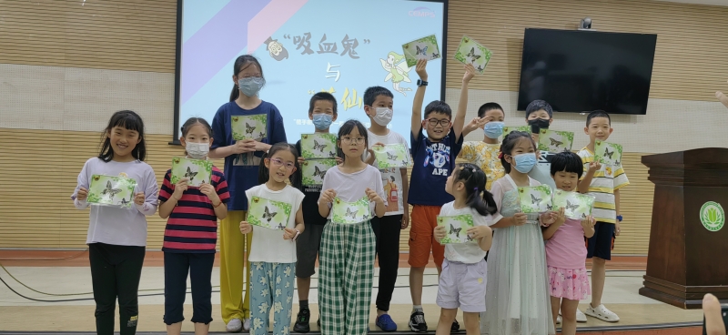 在第二天“吸血鬼与花仙子”主题活动中,王四宝研究组博士研究生杨丙辰就“昆虫的基本分类、蚊子的种类好蚊虫叮咬偏好性的原因与防治措施”等科学问题进行科普讲解。讲座过程中,小朋友们展开了激烈的讨论,提出了许多关于昆虫的疑问,杨丙辰一一进行耐心讲解,解开了小朋友的困惑,满足了孩子们的好奇心。随后,孩子们在志愿者的引导协助下独立制作了一份蝴蝶标本,收获了一份独一无二的半日营纪念品。实验课程结束后,孩子们又前往上海昆虫博物馆进行实地参观,在讲解员老师的带领下近距离感知昆虫魅力。