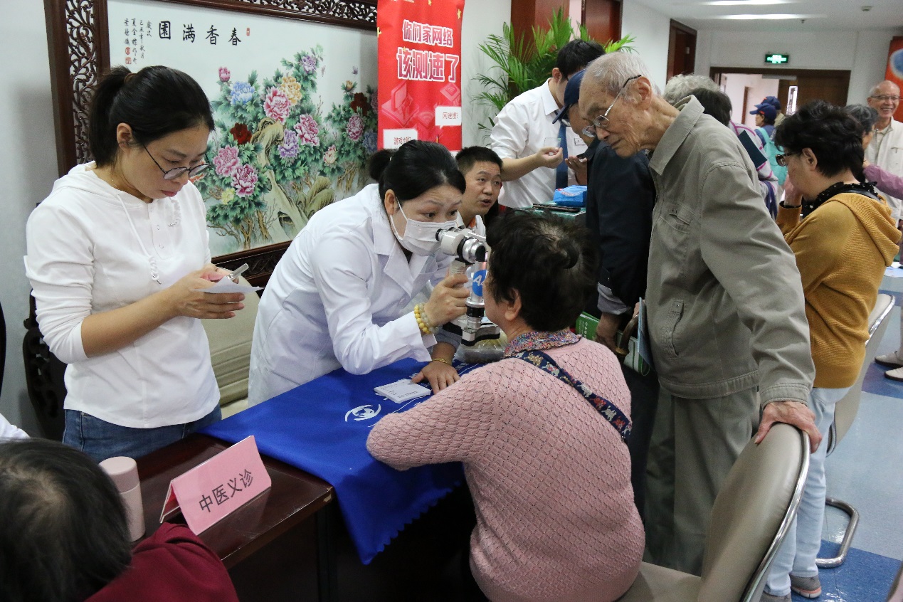 下午,在尚笙湾公益组织的精心策划下,安排了系列敬老服务项目,有全科检测、眼科义诊、口腔义诊、听力检测、中医义诊、测血压、测血糖、手机贴膜、剪发、国风游戏等。老同志饶有兴趣地参加了体验,在欢快的气氛中度过了一个难忘的节日。