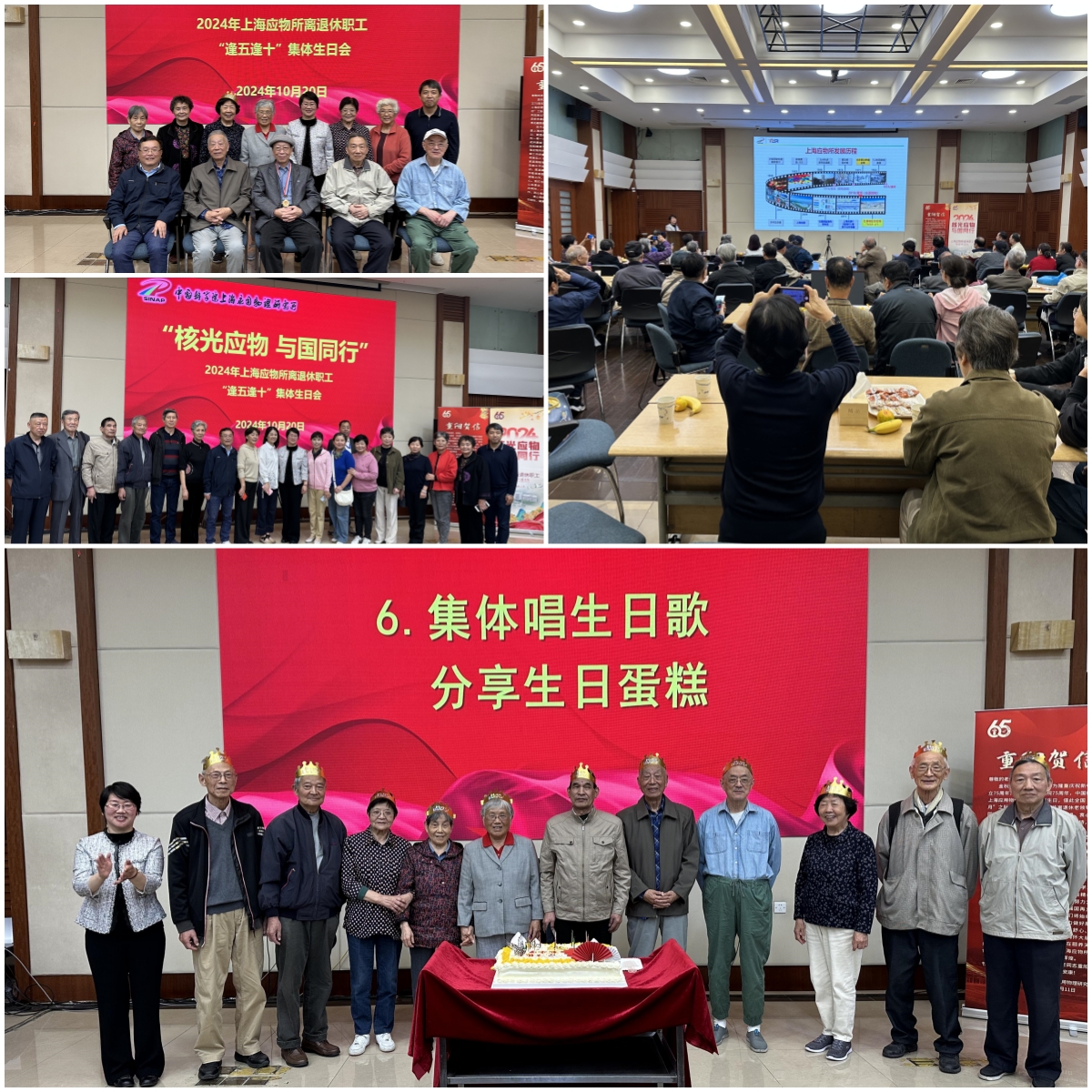 金秋十月,丹桂飘香。为隆重庆祝新中国成立75周年,中国科学院建院75周年,中国科学院上海应用物理研究所建所65周年,值此全国“敬老月”之际,10月20日,上海应物所开展“核光应物 与国同行”离退休职工集体祝寿活动,为离退休老同志送去节日祝福。党委书记、副所长李晴暖出席本次活动,所相关职能部门负责人以及80周岁及以下逢五逢十退休职工等70余人参加了本次活动。活动由党建办主任韩欣主持。