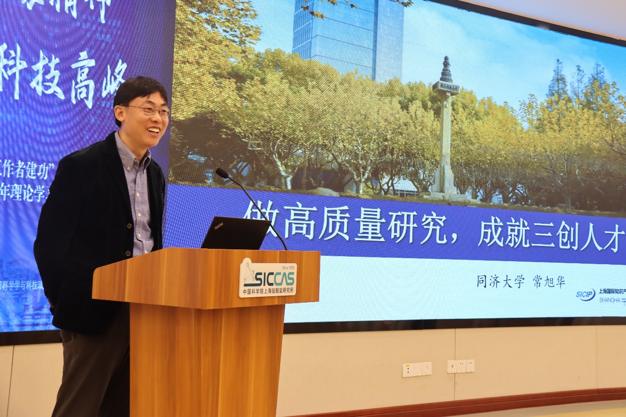 中国科学学与科技政策研究会青工委副秘书长、知识产权专委会副秘书长 常旭华作了题为“做高质量研究,成就三创人才”的报告,报告以“科研人员如何选择适合自己的发展路线”为引子,用丰富、翔实的统计数据,分析了科研人员“创新、创业、创投”的路径选择和成果产出之间的关系,为把科研论文写在祖国大地上作了实践探索。