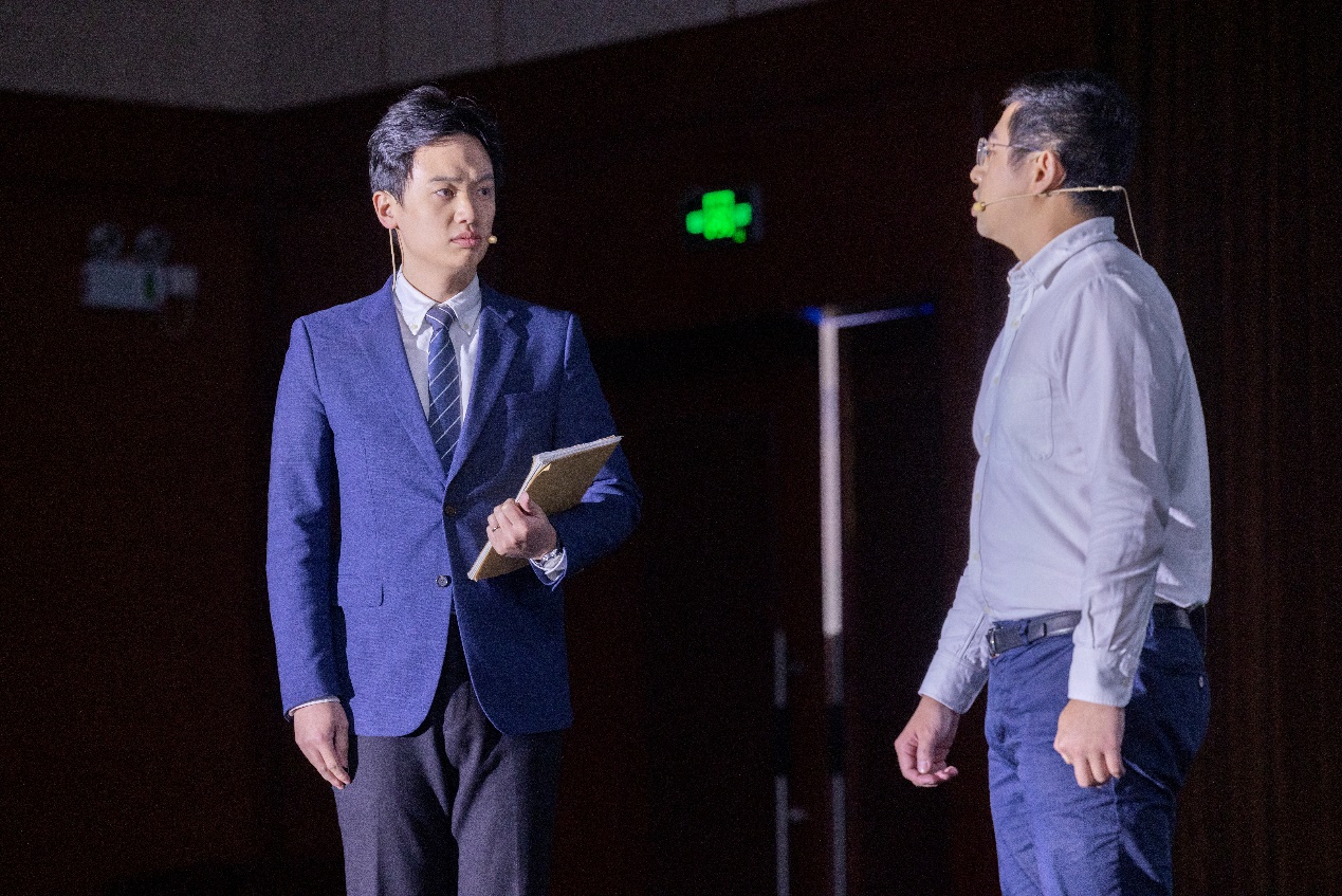 所青年理论学习小组成员、介孔与低维纳米材料课题组林翰副研究员(饰演中年严东生),所青年理论学习小组成员、团委委员、生物材料表面与界面课题组邱家军副研究员(饰演丁肇中),介孔与低维纳米材料课题组金锡雄助理研究员(饰演严东生秘书),热控涂层课题组研究生肖雨昕(饰演青年严东生),纳米功能材料与光电应用课题组研究生杨潇,热控涂层课题组研究生钱源涛、王秉浩,生物材料表面与界面课题组研究生李澄策,固态二次电池材料与器件课题组研究生曾林,生物材料与组织工程课题组研究生刘馨淳共同演绎舞台剧《晶体般闪烁的名字》。该剧时长约15分钟,以无机材料大师、两院院士严东生先生打网球为线索,在挥拍、击球的动作牵引下,将人物、情节、矛盾勾勒出来:时间回到上世纪的八十年代,在脚步与地板的摩擦声中,在网球拍划过空气的声响中,在网球与大地的撞击声中,严东生一如既往,不断地在晶体研制上与其他国家较量,屡创新高。不仅为欧洲核子研究中心提供了12000根大尺寸锗酸铋(BGO)晶体,帮助欧洲核子中心发现了希格斯玻色子,他团队研制的600毫米超长BGO晶体还成为了中国暗物质粒子探测卫星“悟空号”的火眼金睛。该剧充分展现了严东生先生爱党报国的崇高情怀、攻坚克难的创新精神、德馨品高的大家风范。