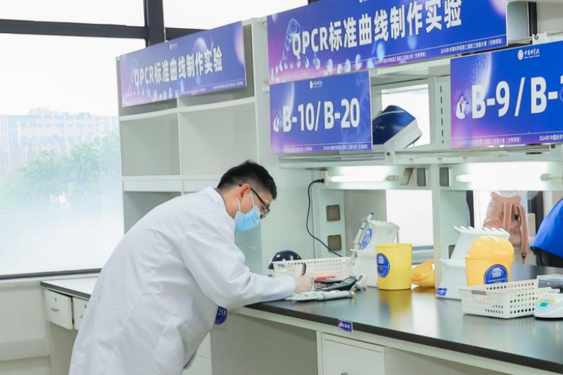 决赛现场,各家单位代表队在台上各展所长,展示出精湛的实验操作技巧和各具特色的高精尖技术。在质粒抽提和qPCR标准曲线制作两个操作实验中,倪晓祥和兰一心沉着冷静、耐心细致,凭借平日实验积累的经验和技术顺利完成操作,并认真撰写实验报告,展现出了高超的实验操作技巧和深厚的专业功底。