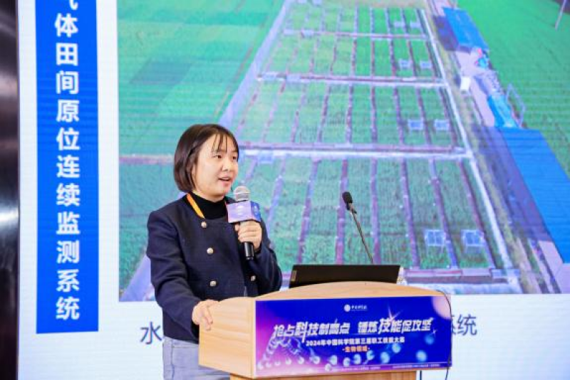 在关键核心技术展示环节,林亚军以“绿动未来:从分子到群体的光合作用探索”为题,展示了团队构建的光合作用数字模型。通过自主研发的一系列高通量设备,团队显著提升了数据采集的速度和精度,为植物生长模型提供了精确的数据支持,并成功实现了特定参数条件下水稻全生育期的数字生长模拟,进一步完善了水稻源库流模型。基于模型指导,通过精细调整关键参数,研究人员能够更准确地控制和预测植物的生长发育过程,为农业生产和作物改良提供了强有力的理论和技术支撑。此项报告不仅彰显了中心在光合作用研究领域的深厚积累与前沿探索,更传递出中心对于推动农业高质量生产和确保粮食安全的坚定决心与使命担当。