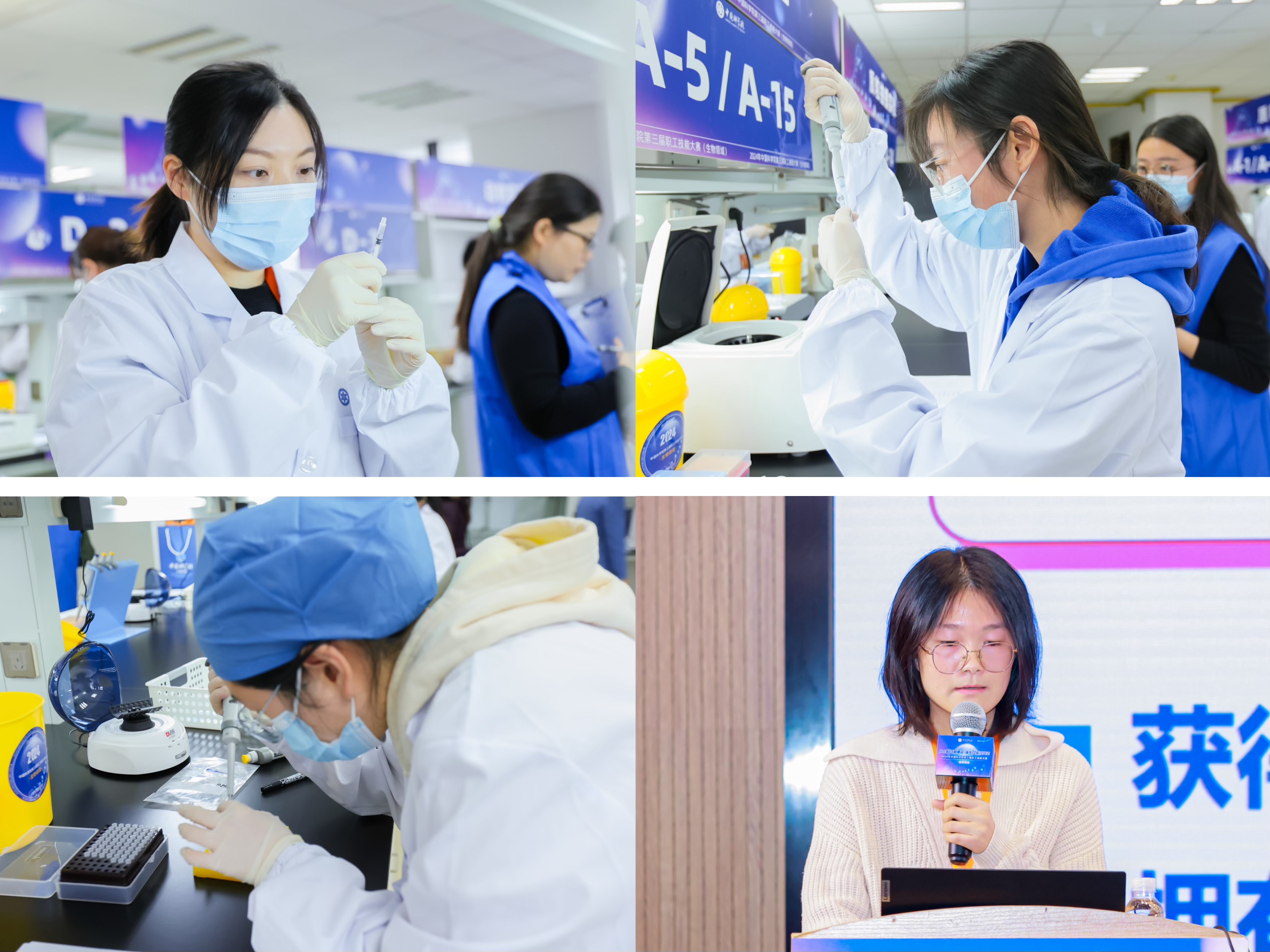 在实验操作竞赛中,中心代表队舒雅婧、陈雨婷、沈贇三位选手分别参加了“质粒抽提”“荧光定量PCR标准曲线制作”和“小鼠实验”三个项目,她们高度专注、气定神闲、操作规范、实验标准,均以小组前三的优异表现为中心代表队取得佳绩打下坚实基础,展现了中心科研人员良好的专业素养。在关键核心技术展示环节,谢甜从后基因组时代生命科学研究面临的诸多挑战,到“人造精子细胞”介导的半克隆技术的诞生,从“快速制备携带标签研究载体”的技术路径,到“基因组原位标记”的构建策略娓娓道来,深入浅出地介绍了“基因组标签技术”的特点和优势,讲述了中心科学家大胆设想、勇敢探索,为解决后基因组时代蛋白质在体、实时、动态、可控研究瓶颈问题给出“中国方案”,为抢占生命科学制高点做出贡献的生动故事。