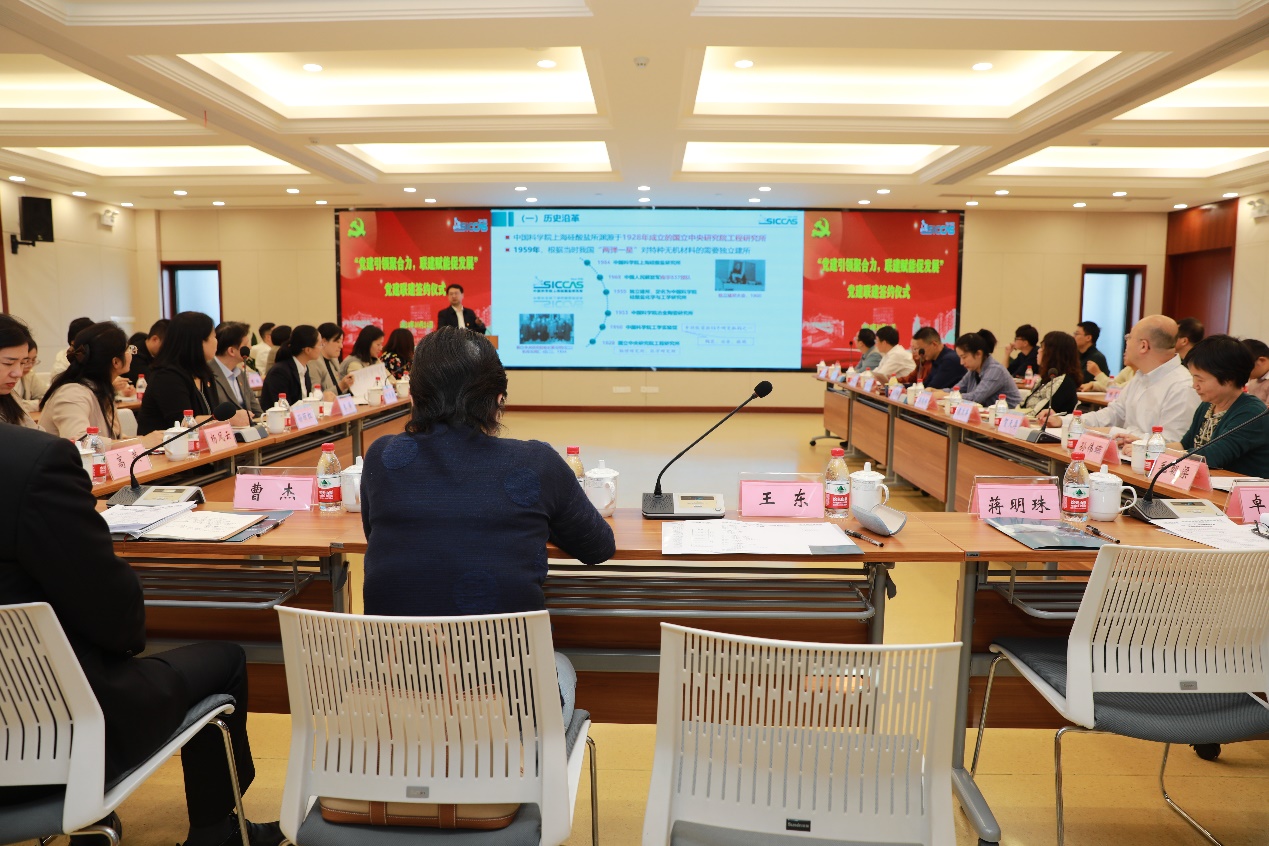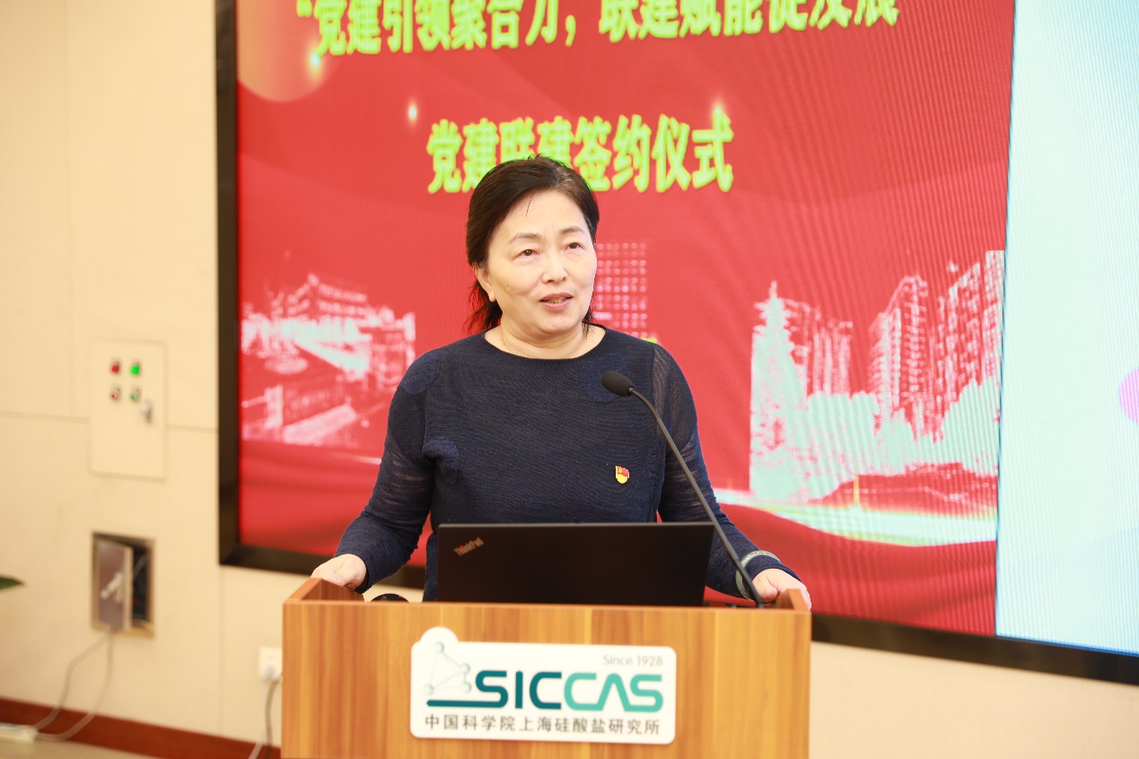 上海硅酸盐所新材料中试研发中心党支部书记袁兰英作交流发言