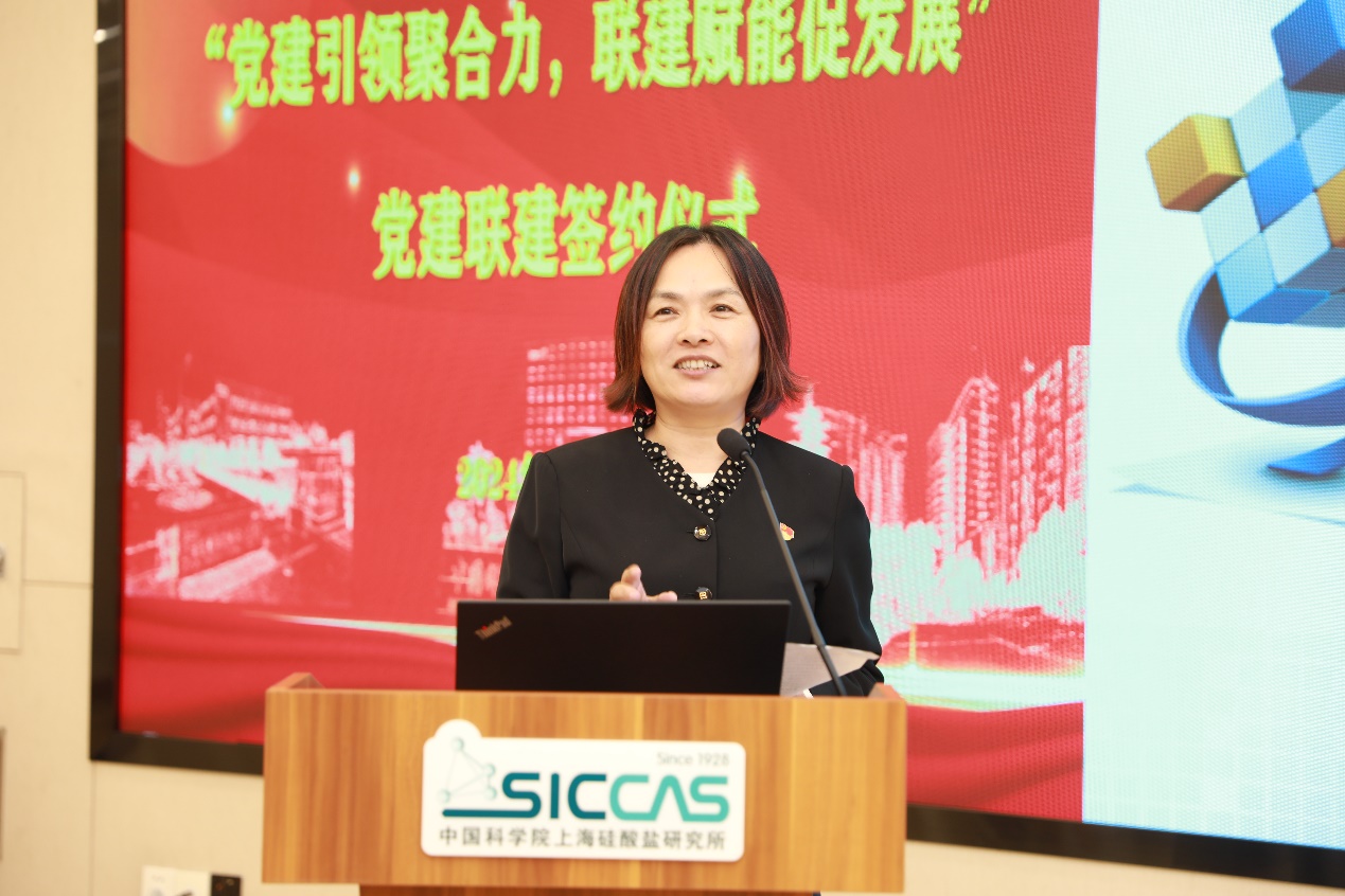 会上,上海硅酸盐所新材料中试研发中心党支部书记袁兰英,中国银行嘉定菊园新区支行党支部书记、行长刘佳蔚,嘉定区妇幼保健院副院长杨凤云和嘉定区实验小学党支部副书记孙丽红依次作交流发言。大家一致认为,党建联建的建立是新时代加强党的建设的创新举措,更是推动深度合作、共同发展的重要桥梁。后续将积极落实党建联建协议内容,通过“资源整合、优势互补、互利共赢、共同提高”的方式,确保党建联建取得实效。要以更高定位引领方向、更高标准统筹资源、更高品质打造示范,挖掘高质量发展的内生动力,以“四轮驱动”党建业务深度融合,赋能区域高质量发展。