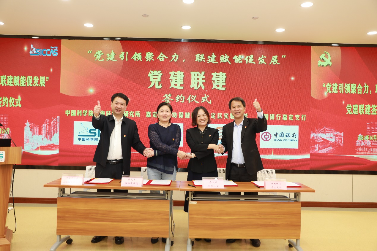 10月24日下午,中国科学院上海硅酸盐研究所、上海市嘉定区妇幼保健院、上海市嘉定区实验小学和中国银行嘉定支行共同举行“党建引领聚合力,联建赋能促发展”党建联建合作签约仪式暨交流活动。
