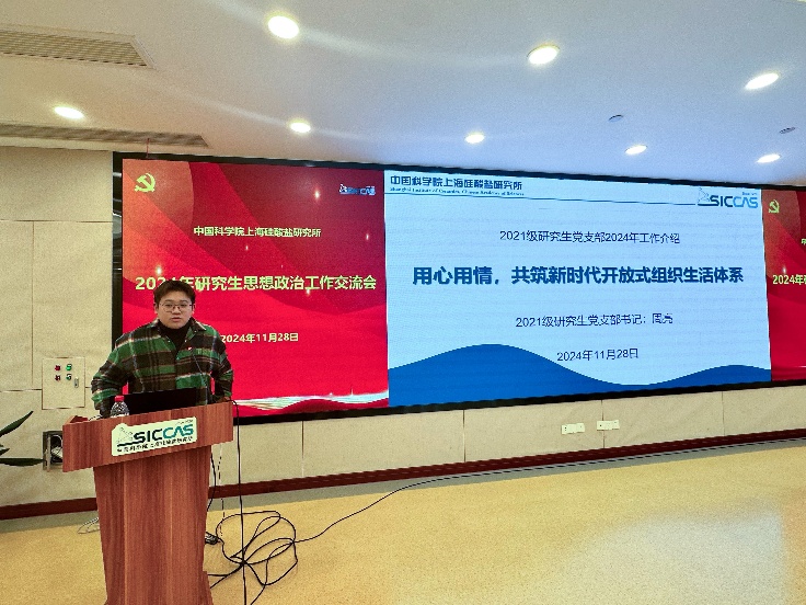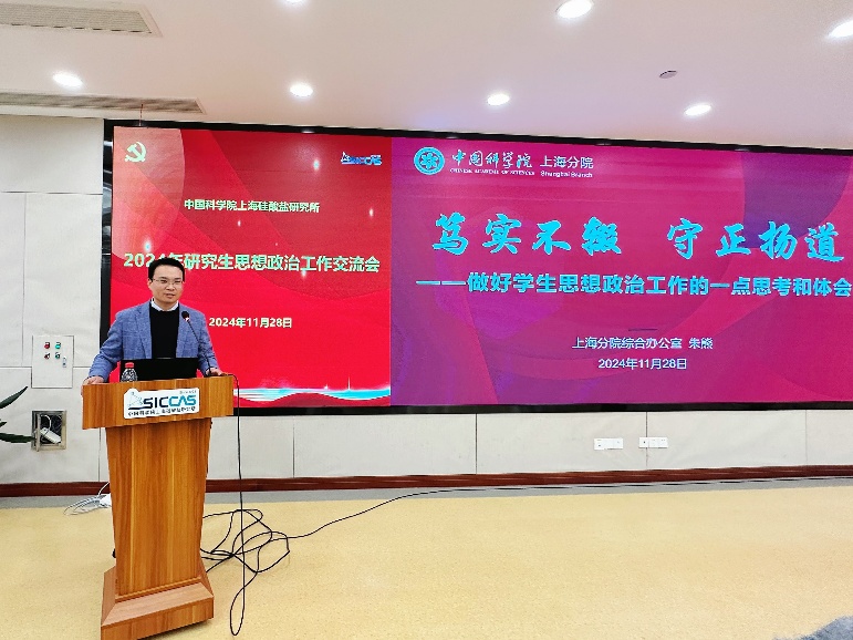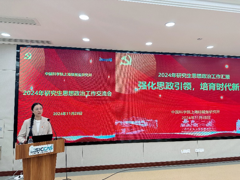 上海硅酸盐所研究生部副主任、研究生党总支书记陆彩飞作报告