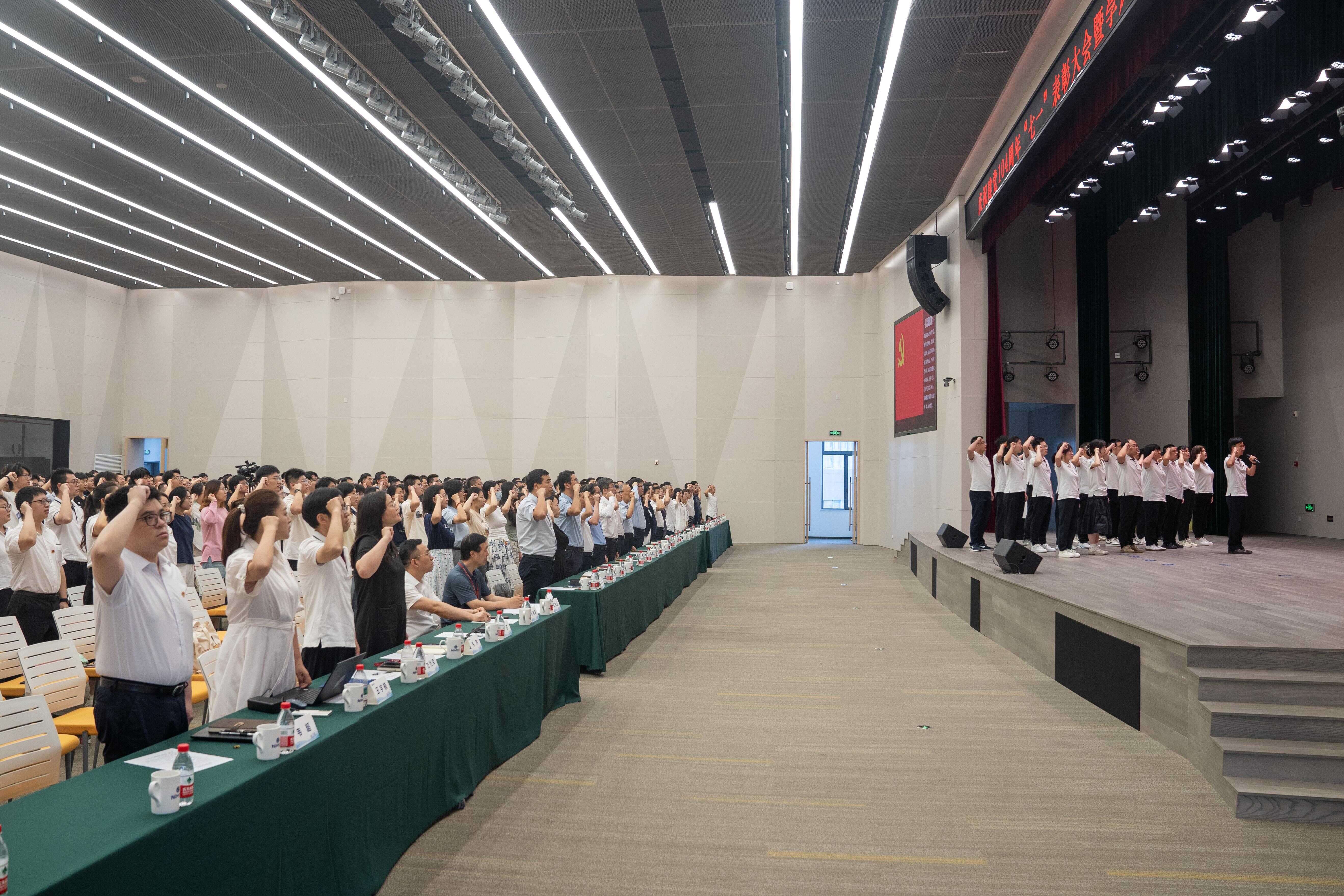 会议在庄严的国歌声中拉开序幕。新党员代表向超宇带领22名新党员庄严宣誓,全体党员一起回顾入党初心。