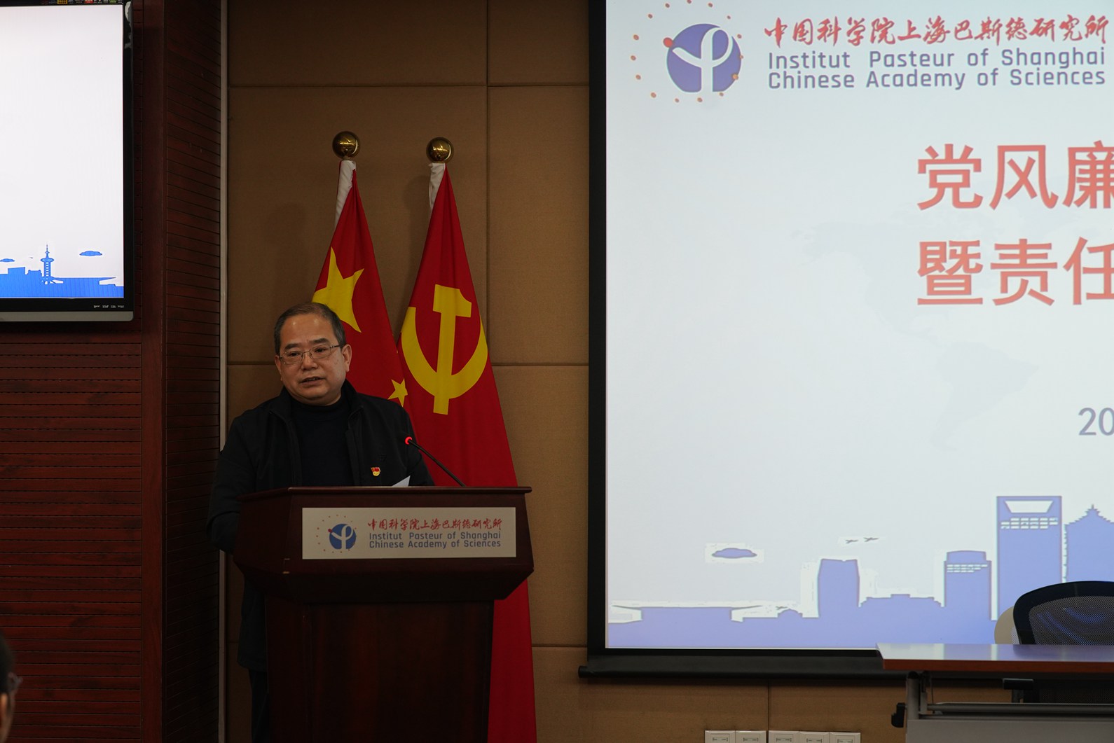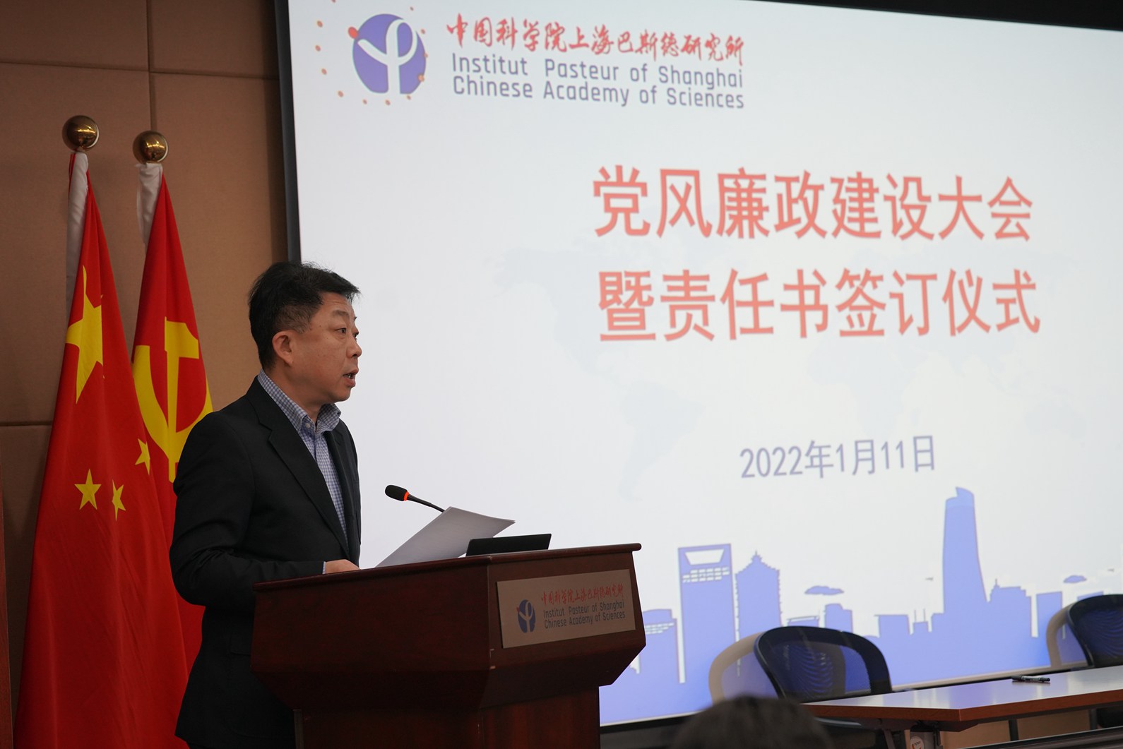 1月11日,上海巴斯德所召开2022年党风廉政建设大会暨责任书签订仪式。所班子全体成员、两委委员、中层领导人员、副高及以上科研管理骨干和职工代表等50余人参加会议。会议由纪委书记张帆同志主持。