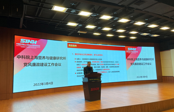 3月4日,中科院上海营养与健康研究所召开了2022年度党风廉政建设工作会议。研究所领导班子成员、所务委员、党委委员、纪委委员、科研骨干、职能管理部门、支撑平台负责人、支部书记及纪检委员等60余人参加了会议。会议由党委书记、副所长瞿荣辉主持。