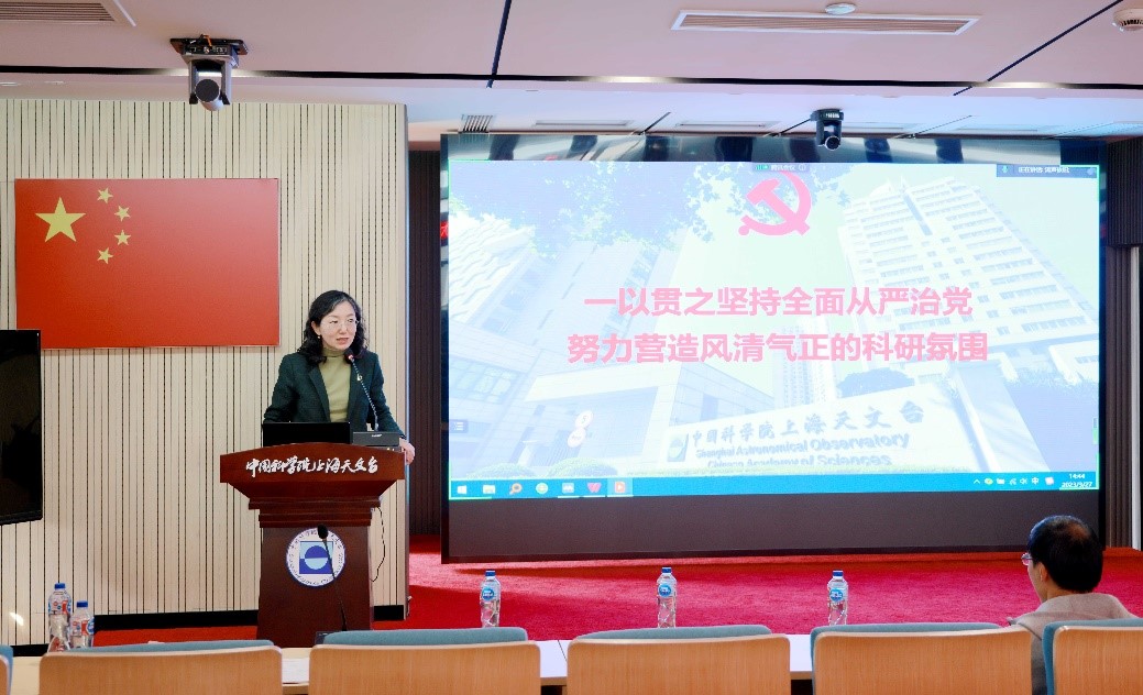纪委书记姚娅平作《一以贯之坚持全面从严治党 努力营造风清气正的科研氛围》廉政专题报告,传达学习二十届中央纪委二次全会精神,介绍了台纪委2023年重点工作,并通过多个典型案例通报让全台职工牢固树立政治意识、法治意识、纪律意识、规矩意识。她强调,上海天文台纪委将继续坚持以习近平新时代中国特色社会主义思想为指导,始终坚持问题导向,推进我台全面从严治党体系的构建,以有力专责监督保障台“十四五”规划、研究所治理体系改革落实见效;进一步推进作风建设常态化长效化,强化经常性纪律教育,一体推进不敢腐、不能腐、不想腐,为上海天文台科技创新的高质量发展提供坚强有力的保障。