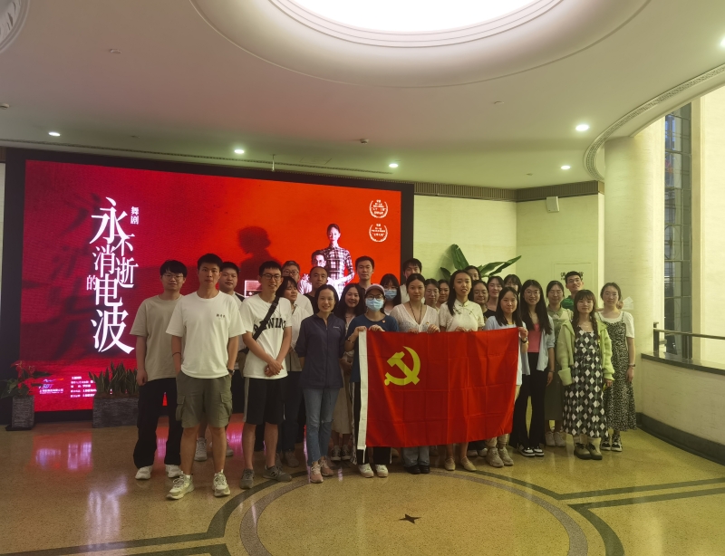 晚上,全体党员怀着十分崇敬的心情,集体观看舞剧《永不消逝的电波》。当日晚上的剧院,观者云集,座无虚席,气氛庄重热烈。曼妙的舞姿、极尽精美的光影结合恢弘壮阔的音乐,瞬间让人回到了解放前夕的上海,让大家身临其境地感受李侠夫妇冒着巨大风险传递情报的紧张气氛。剧终,全场掌声雷动,经久不息。