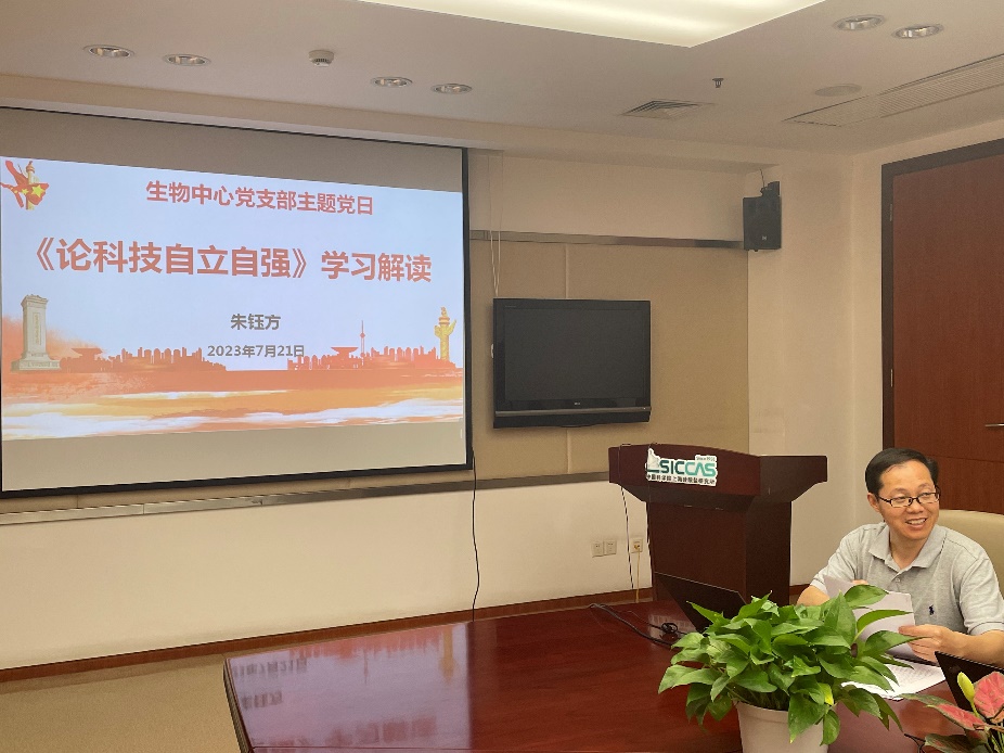7月21日下午,中国科学院上海硅酸盐研究所生物材料与组织工程研究中心党支部召开支部党员大会,持续深入推进学习贯彻习近平新时代中国特色社会主义思想主题教育。党委委员陈航榕、生物中心党支部15名党员、入党积极分子熊志超参加了会议。会议由生物中心党支部书记朱钰方主持,分为三个阶段进行。