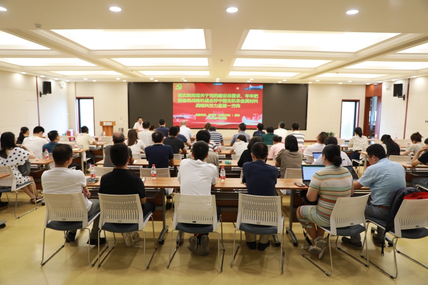 7月26日下午,中国科学院上海硅酸盐研究所机关第一党支部、结构陶瓷与复合材料工程研究中心党支部、苏研院党支部、透明陶瓷研究中心党支部开展联组学习,持续深入推进学习贯彻习近平新时代中国特色社会主义思想主题教育,党委书记、副所长(主持工作)王东,党委委员、所务委员、科技发展部部长闫继娜,四个党支部党员60余人参加会议。会议由苏研院党支部书记秦超主持。
