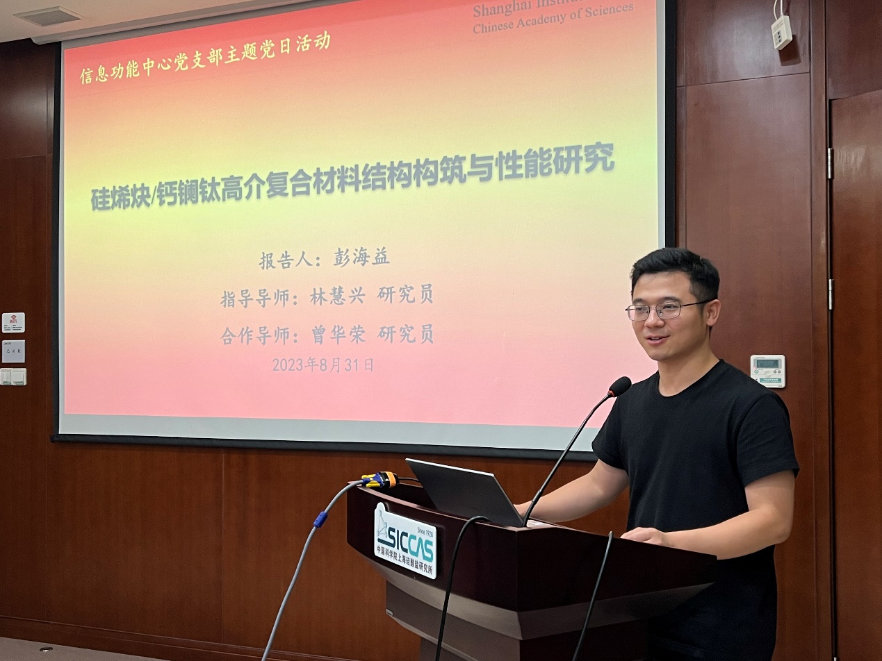 8月31日下午,中国科学院上海硅酸盐研究所信息功能材料与器件研究中心党支部开展“学思想,担使命,抢占科技制高点”主题党日活动,深入学习贯彻中国科学院党组2023年夏季扩大会议精神,深度推进学习贯彻习近平新时代中国特色社会主义思想主题教育走深走实。上海硅酸盐所高技术处处长周林,信息功能中心主任王根水及相关党员、青年科技人员、博士后等参加了活动。活动由信息功能中心支部书记、副主任曾华荣主持。