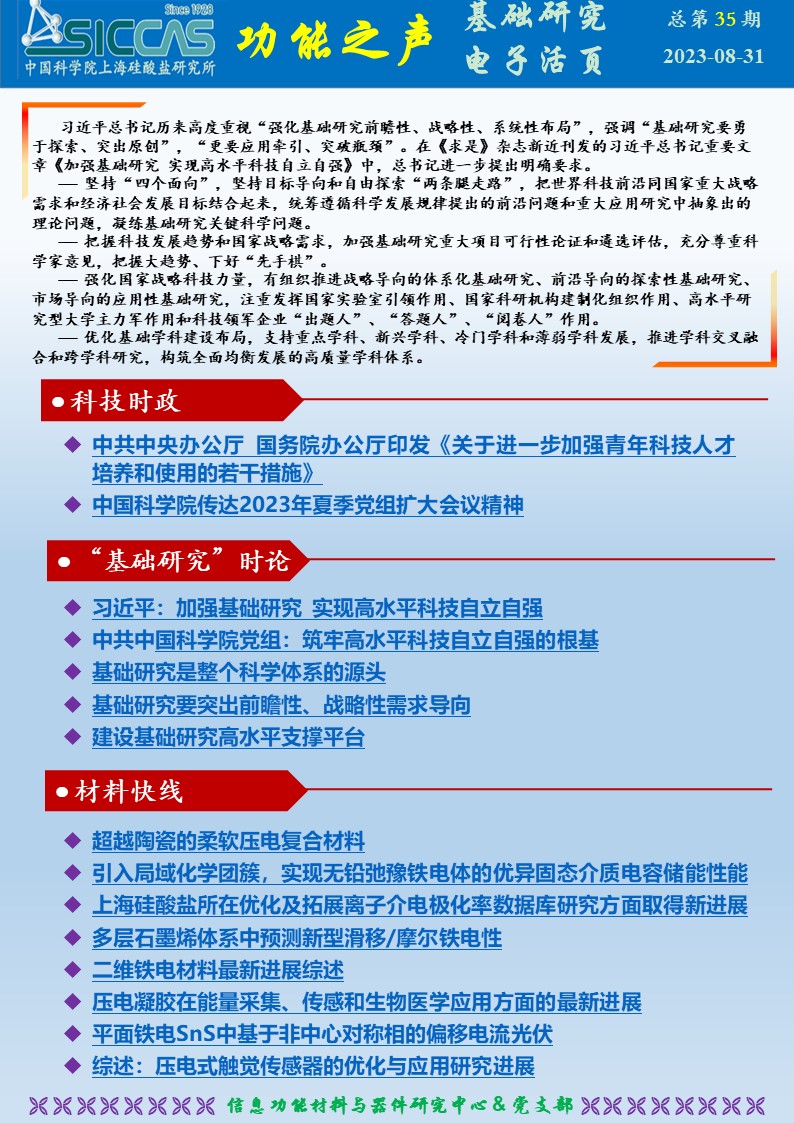 在基础研究篇中,支部推出了最新一期“功能之声-基础篇”特别专刊,重点介绍了习总书记8月1日在《求是》期刊上发表的重要文章《加强基础研究, 实现高水平科技自立自强》、中共中国科学院党组发表的《筑牢高水平科技自立自强的根基》以及相关基础研究的时政评论文章,旨在引领大家,深入研读、思考和高度践行总书记对基础研究提出的新要求。