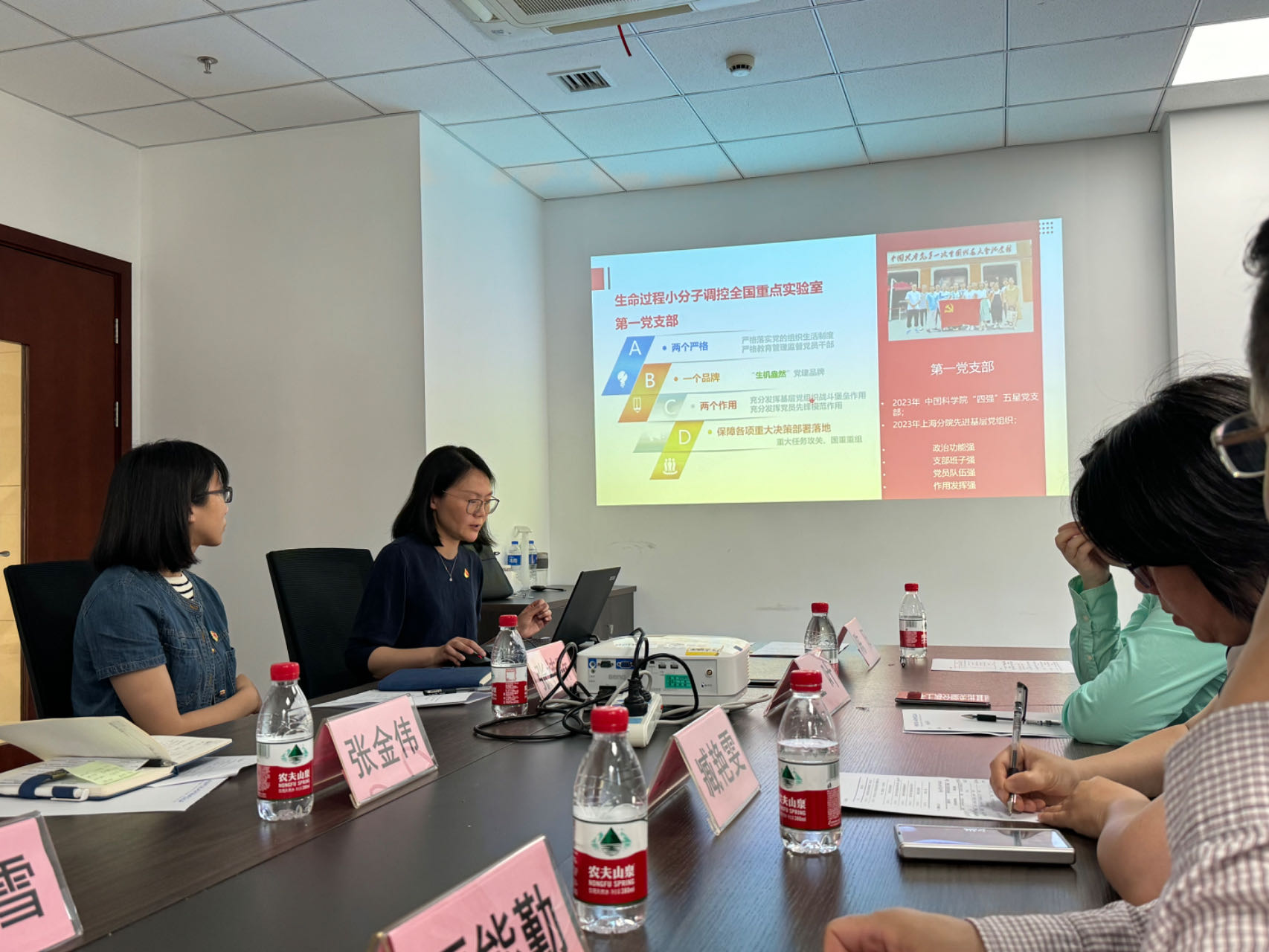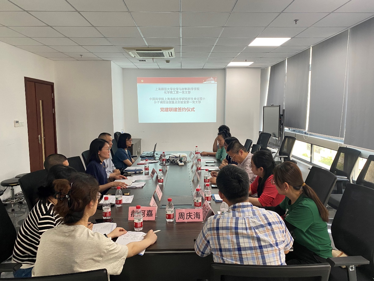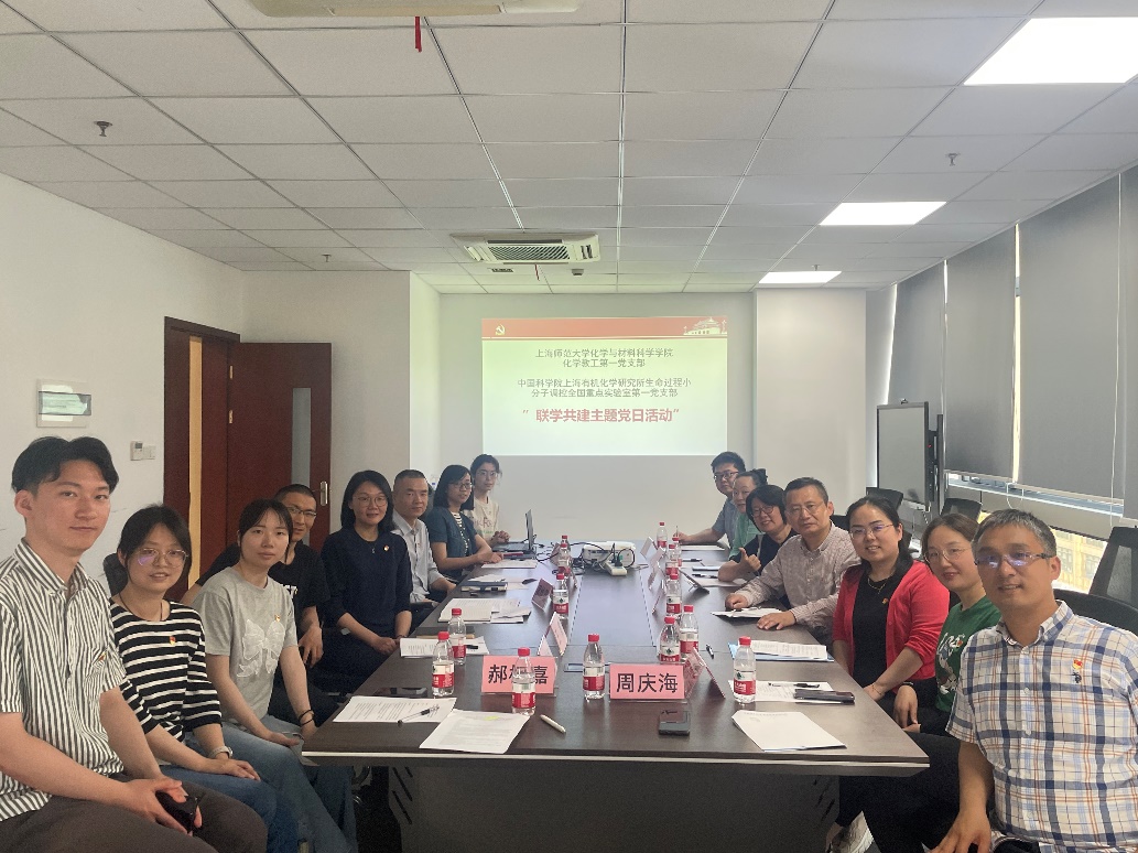 此次活动由中国科学院上海有机所生命过程第一党支部副书记黄维雪主持,上海有机所生命过程第一支部纪检委员徐兰婷,组织委员郝柯嘉,宣传委员陈伊涵,青年委员罗邦科,支部党员骨干张金伟研究员,王震研究员,张祎昕副研究员;以及上海师范大学化材学院党委副书记兼副院长臧艳雯,化学教工第一党支部书记贾能勤,化学教工第二党支部书记应叶等参加了活动。