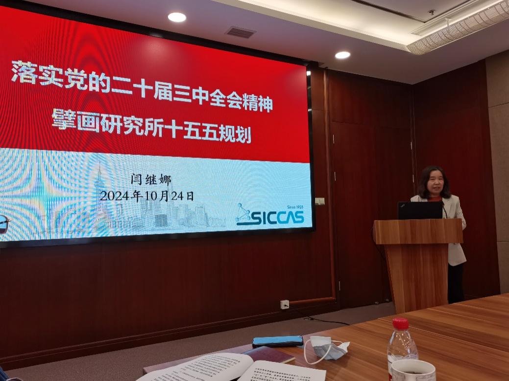 闫继娜作题为“落实党的二十届三中全会精神,擘画研究所‘十五五’规划”的党课报告