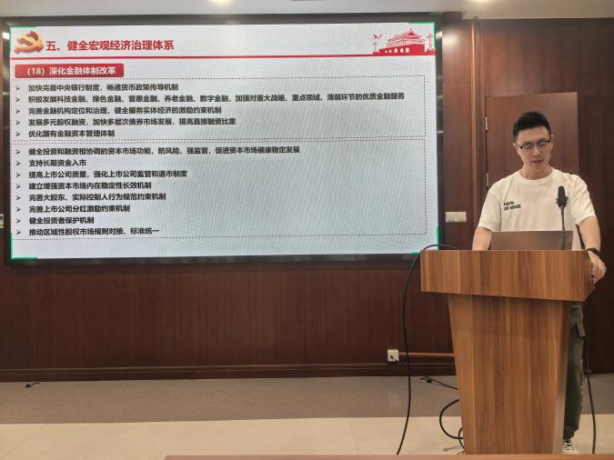 党员讲党课环节中,支部党员施凯莹和王路分别就《学习贯彻党的二十届三中全会精神》作主题党课报告。通过详细介绍和解读,使党员们深入学习了新时代进一步深化改革,推进中国式现代化的重大意义。