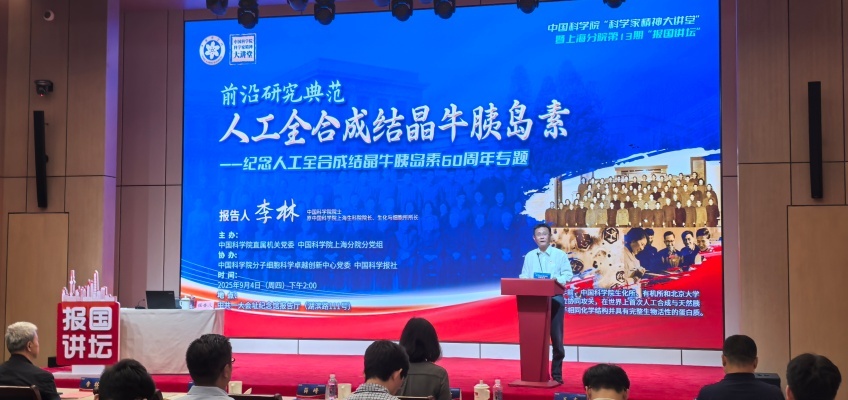 9月4日,中国科学院“科学家精神大讲堂”暨上海分院“报国讲坛”纪念人工全合成结晶牛胰岛素60周年专场活动在上海中共一大纪念馆报告厅举行。