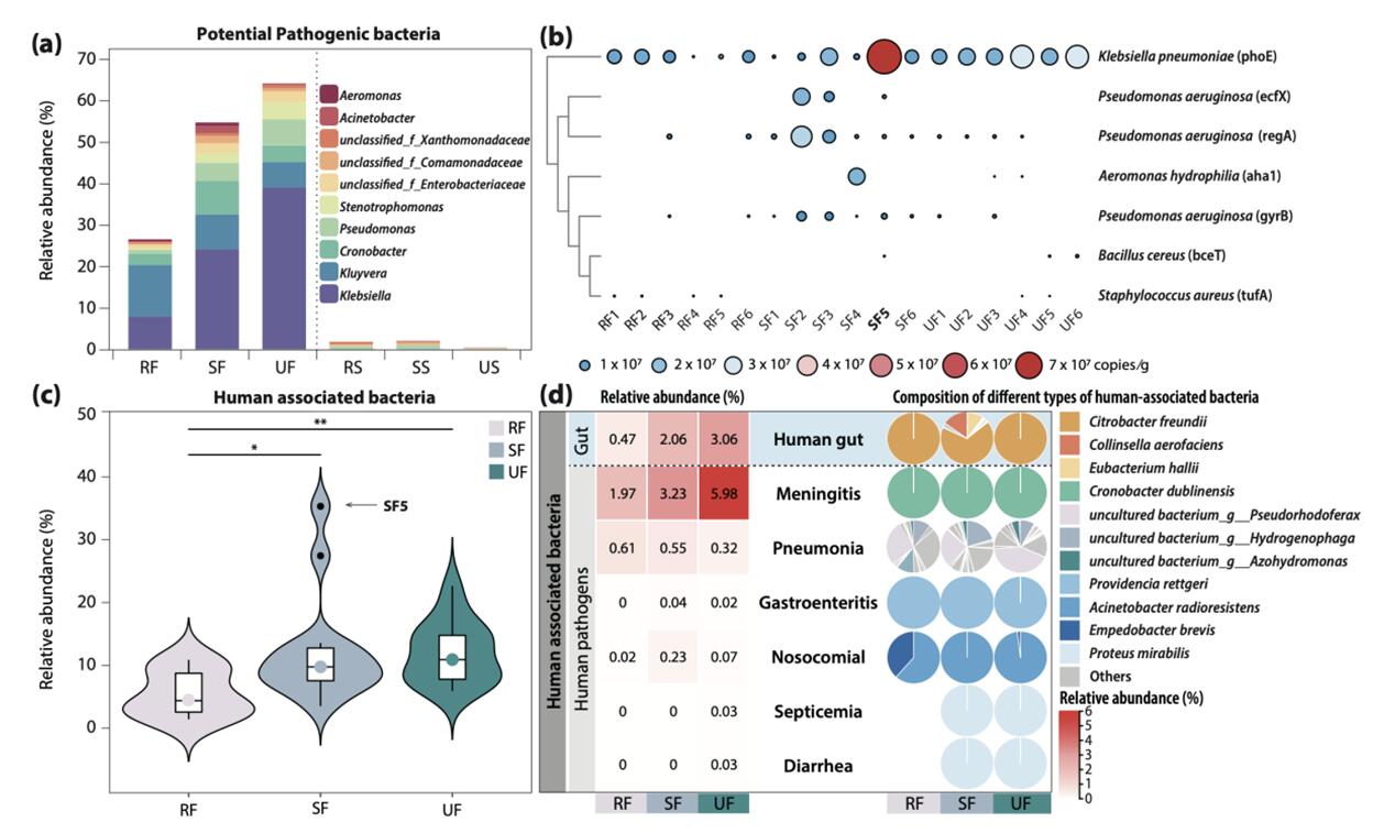 基于此,中国科学院城市环境研究所朱永官院士团队孙新研究组开展了城市化梯度下非洲大蜗牛肠道微生物组及抗性组的生物污染特征研究。研究发现,城市绿地中的非洲大蜗牛是抗生素抗性基因和潜在人类病原菌的储库和“迁移”载体。同时,城市化驱动了该动物源生物污染多样性和丰度的增加,即城市中蜗牛携带了更多高风险抗生素抗性基因和潜在人类病原菌(如ESKAPE病原菌)。该研究为揭示城市化对土壤动物源肠道微生物组和抗性组的影响提供了新的见解,并为其他入侵动物可能引发的生态和健康风险敲响了警钟。研究还强调,在“One Health”框架下,我们应更加关注城市入侵动物带来的疾病传播风险,并加强对重要入侵动物类群的动态监测与管理。