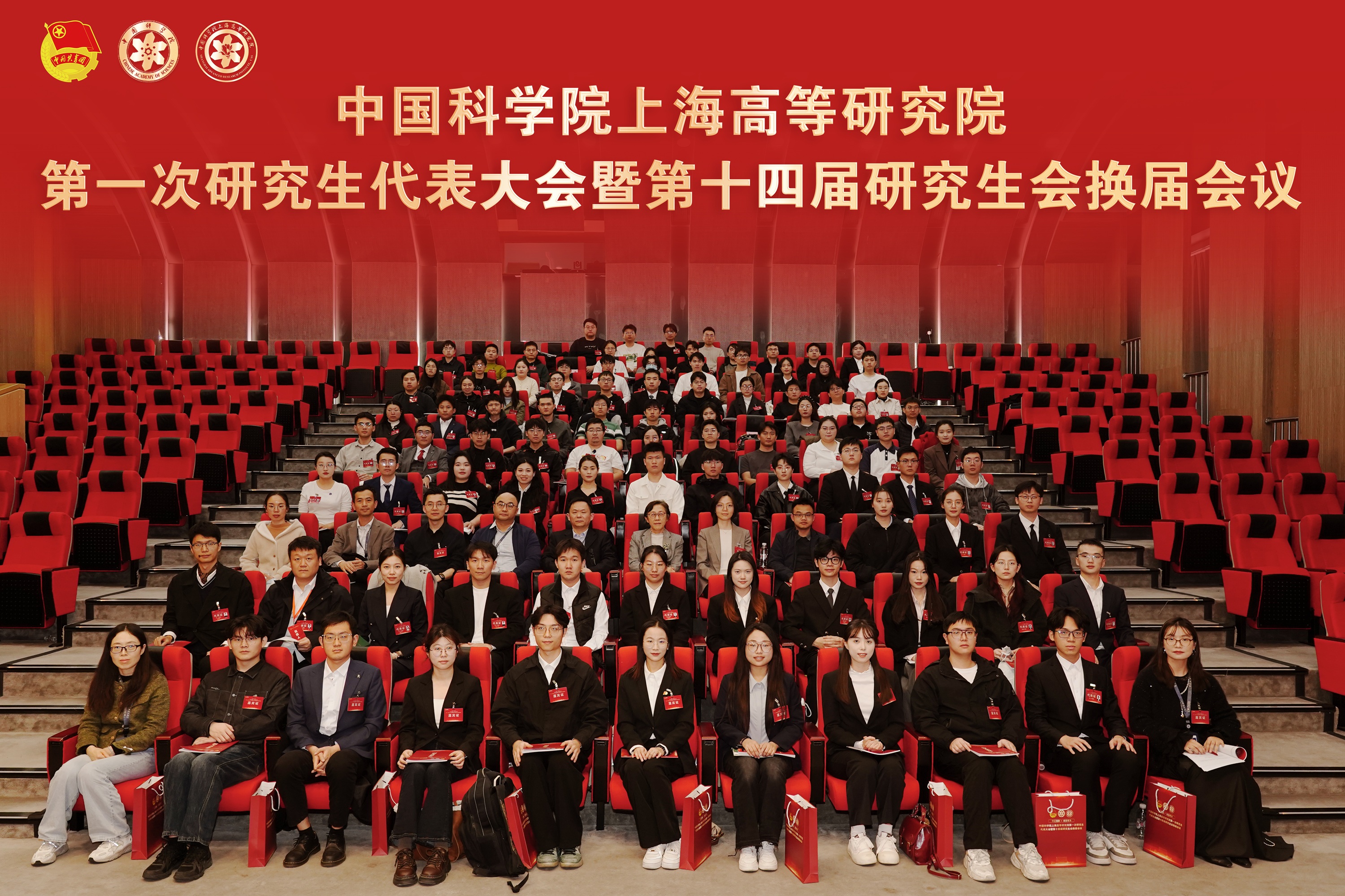 2025年12月1日,中国科学院上海高等研究院(以下简称“上海高研院”)第一次研究生代表大会暨第十四届研究生会换届会议(以下简称“大会”)在海科路100号10号楼报告厅隆重召开。来自上海高研院各班级、科研中心的83名研究生代表肩负使命、齐聚一堂。
