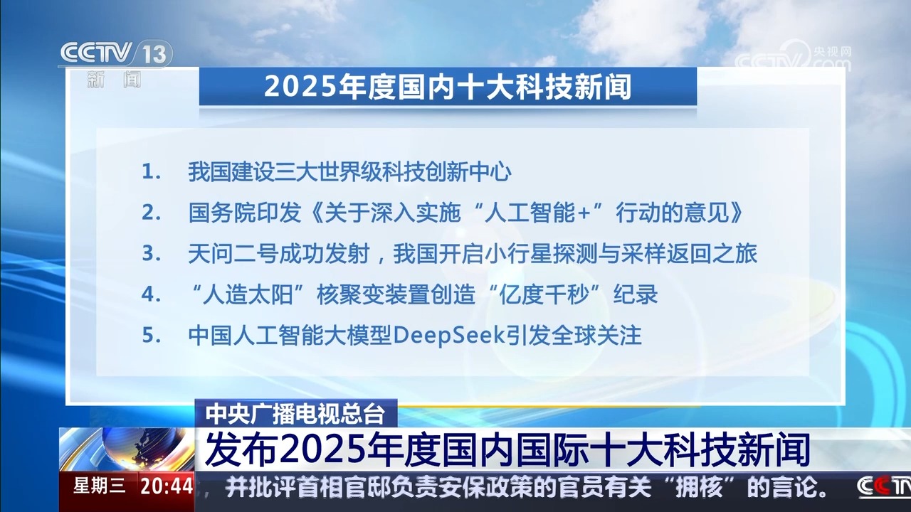 【东方时空】中央广播电视总台 发布2025年度国内国际十大科技新闻