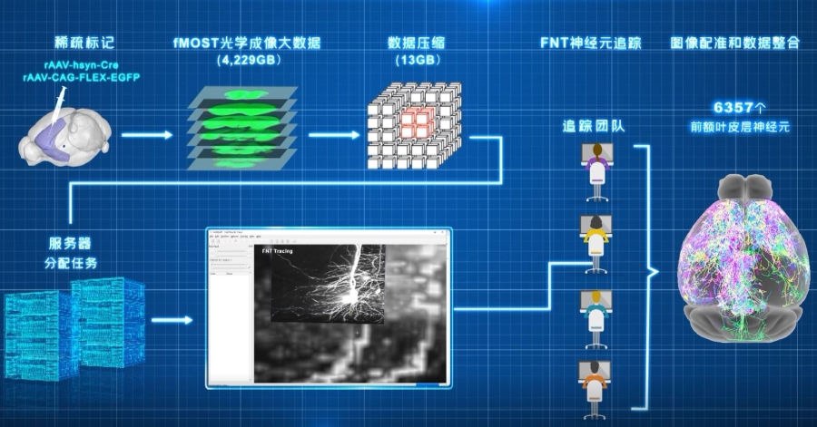 龚辉介绍,在此项研究中,团队建立起了一系列技术平台,将为研究全脑介观神经联接图谱提供重要的技术支撑。