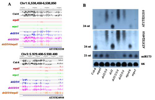 通过对长度为18-100nt的小RNA测序,他们首次发现在Dicer突变植物中DNA甲基化水平与一类新的长度为25-50 nt的RNA表达水平正相关。这一类RNA的产生依赖于RNA聚合酶IV(因此被命名为P4 RNA),表明这可能就是长期寻找的RNA聚合酶IV的转录产物。结合已经发布的拟南芥组蛋白修饰的全基因组数据,发现在RdDM途径中,24-nt siRNA和他们的前体P4 RNA 哪个更重要可能取决于所在位点的周边染色质的环境,即完全依赖Dicer活性的位点主要位于富含活跃表观遗传标记(H3K4me2,H3K4me3,H3K9ac)即转录活跃的常染色质区,而部分或完全不依赖Dicer活性的位点主要位于富含抑制表观遗传标记(H3K9me2,H3K27me1)的转录不活跃的异染色质区域。
