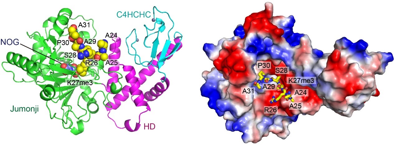 JMJ13和底物H3K27me3小肽复合物的晶体结构