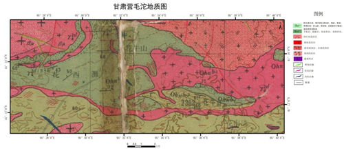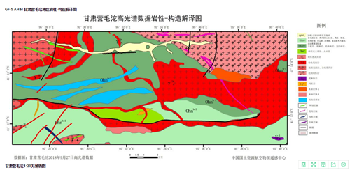 GF-5 AHSI甘肃营毛沱地区岩性-构造解译图 |