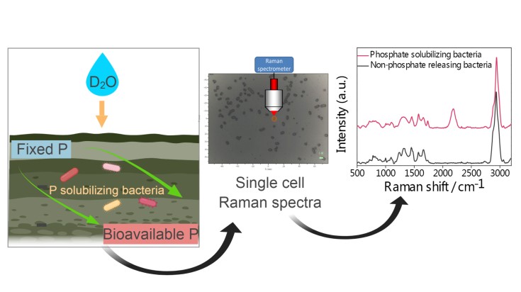 微生物是土壤元素循环的发动机,解磷微生物可以通过释放有机酸溶解土壤中的钙磷,或释放活性磷酸酶活化土壤中的有机磷。利用解磷微生物释放土壤中被固定的磷,提升磷的生物有效性,对磷素的可持续利用和缓解磷矿枯竭危机具有至关重要的作用。然而,环境微生物的大量不可纯培养性,对开发利用微生物资源带来了很大的挑战。从单细胞水平上研究环境微生物可克服纯培养或富集培养的限制,实现在环境介质下的原位研究,拉曼光谱可在单细胞水平上对微生物进行无损检测。