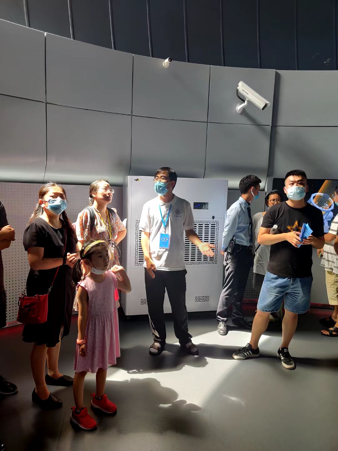 上海天文台光学天文技术研究室项目组的科研人员郑立新高级工程师热情洋溢地向现场观众详细介绍这台1米望远镜的工作原理,重点讲解了工作焦点快速切换、新型焦点延长系统为不同身高观众提供舒适观测体验、设置多个接收终端来实现多种天文观测功能和以互联网技术与自动控制技术实现良好人机互动等特色功能,同事耐心解答了现场观众的提问。