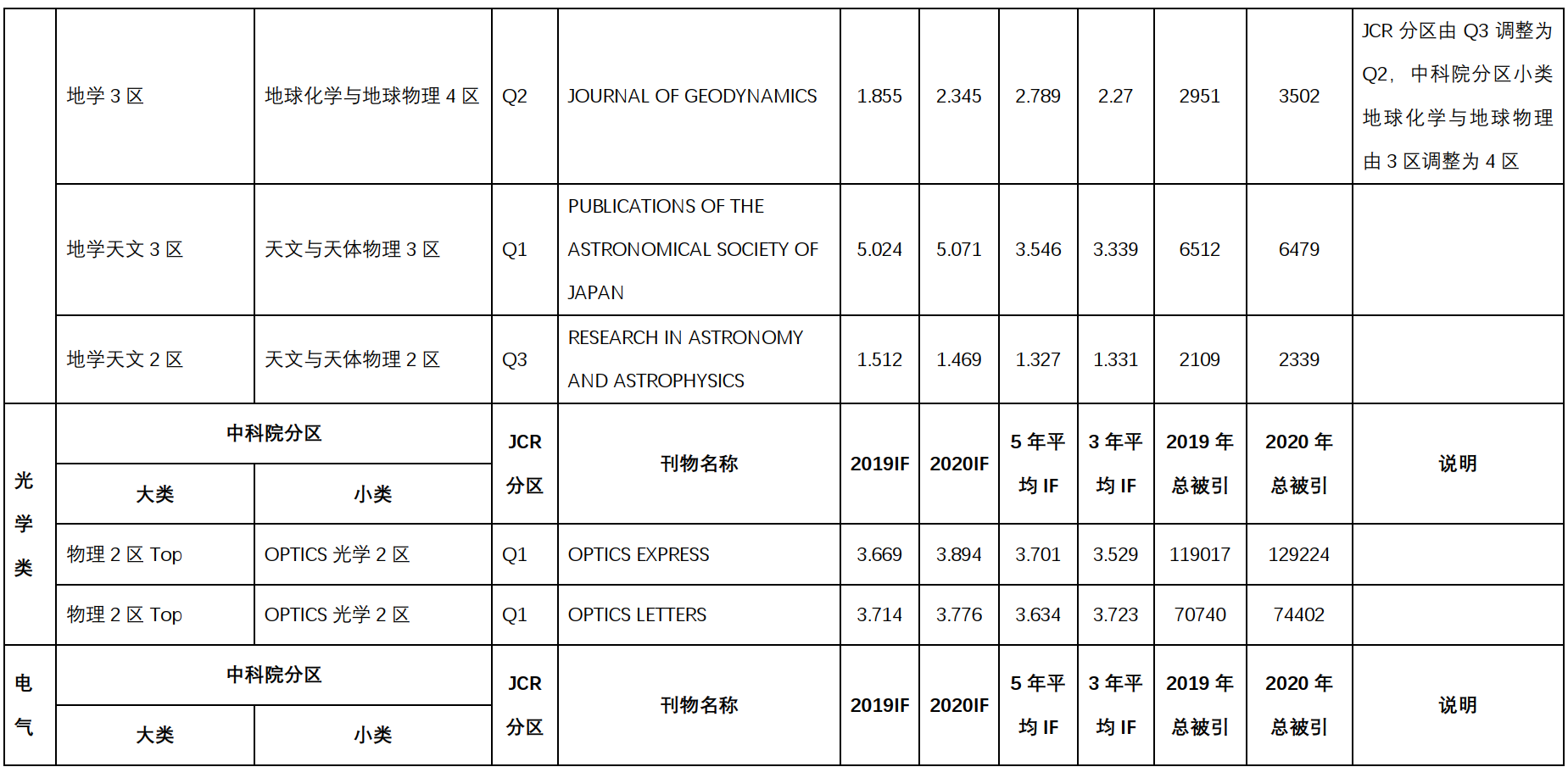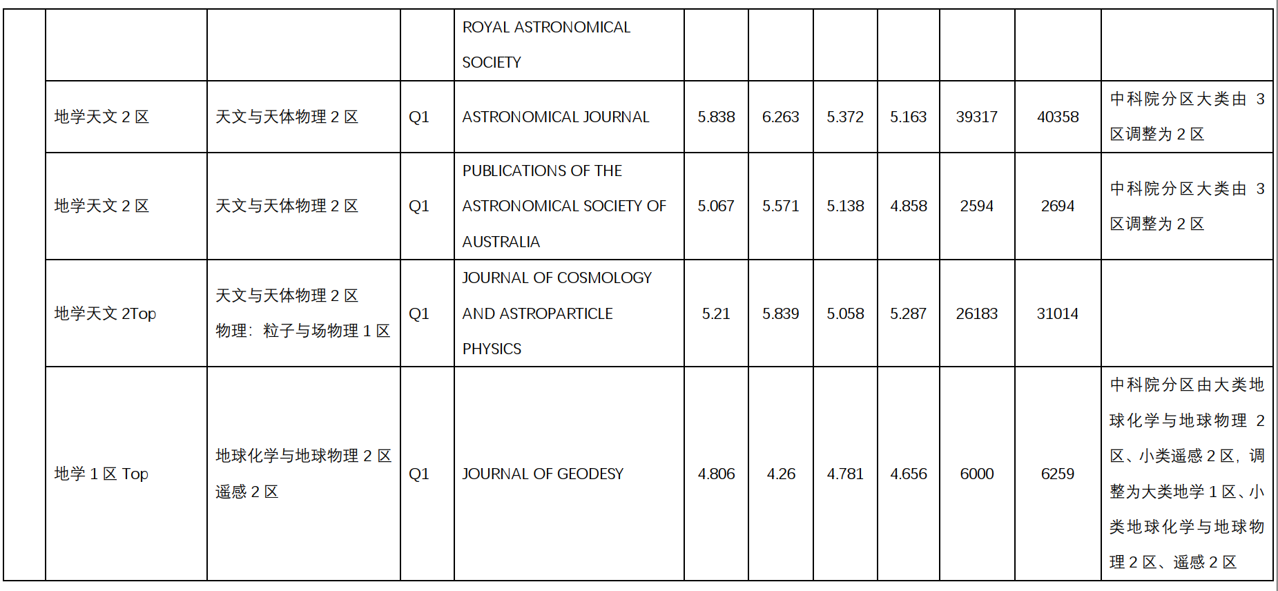 2021年度《期刊引证报告》基于2020年 Web of Science 核心合集(Web of Science Core Collection)——这一全球最大的非出版机构引文数据库数据编制完成,为方便研究人员更好地了解期刊的信息,图书馆整理天文及相关学科的JCR期刊情况和中科院期刊分区情况如下:
