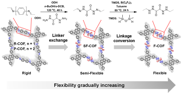 图2 通过结构转化逐步调控COFs骨架柔性示意图