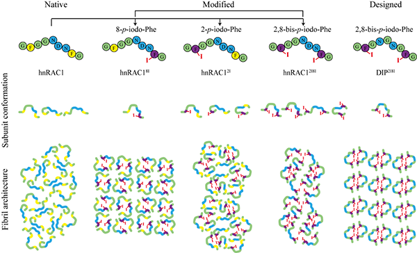 在多肽的不同位置引入碘原子会产生各种不同的肽链结构,并进一步排列成不同的纤维结构。