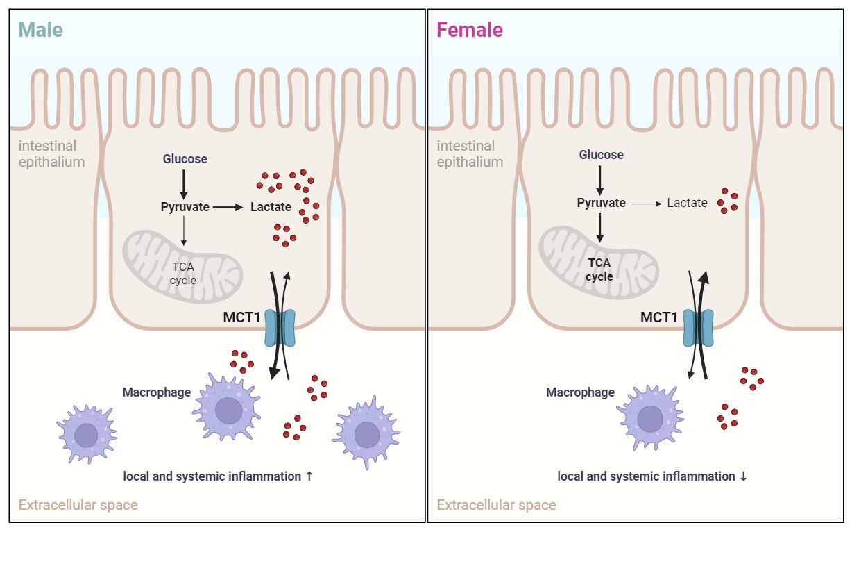 11月6日,中国科学院上海营养与健康研究所陈雁研究组在国际学术期刊Life Metabolism在线发表了题为“Intestinal monocarboxylate transporter 1 mediates lactate transport in the gut and regulates metabolic homeostasis of mouse in a sex-dimorphic pattern”的研究论文。该研究发现,肠道单羧酸转运蛋白MCT1能够介导肠上皮的乳酸转运,并通过影响肠道巨噬细胞和炎症水平调控雄性小鼠的糖代谢稳态。同时,该研究也揭示了肠道MCT1影响的相关代谢表型在雌雄小鼠存在明显的性别差异及其可能的机制。