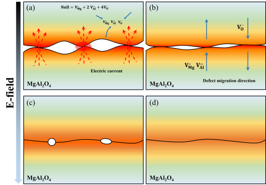 镁铝尖晶石透明陶瓷电场辅助快速连接机理图