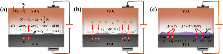 氧化钇透明陶瓷与钛合金电场辅助快速连接过程示意图