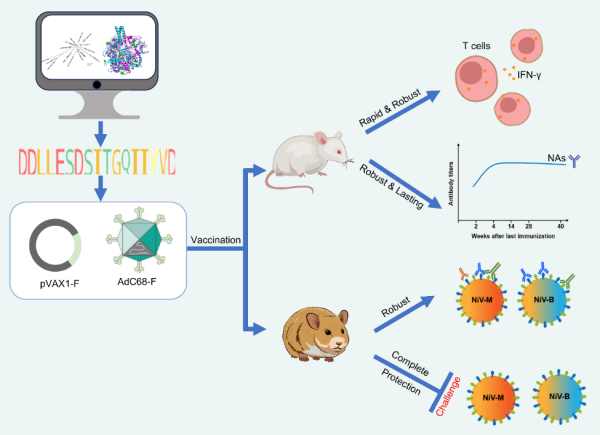 12月8日,中国科学院上海免疫与感染研究所蓝佳明研究员与中国科学院武汉病毒研究所单超、袁志明团队、中国科学技术大学Sandra Chiu团队合作,在国际学术期刊JCI insight发表了题为Vaccines based on the fusion protein consensus sequence protect Syrian hamsters from Nipah virus infection的研究论文。该研究通过计算机辅助设计尼帕病毒多个毒株的consensus序列,基于这一序列设计的尼帕病毒疫苗有望进一步开发为尼帕病毒广谱疫苗。