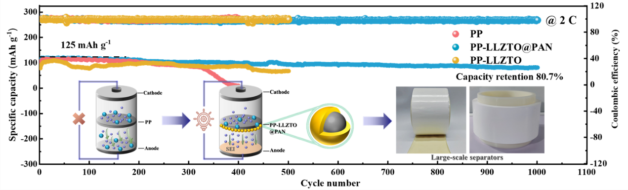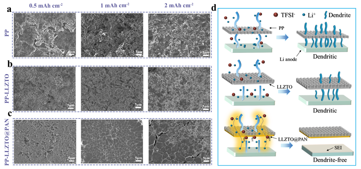 LLZTO@PAN功能化隔膜抑制锂枝晶示意图
