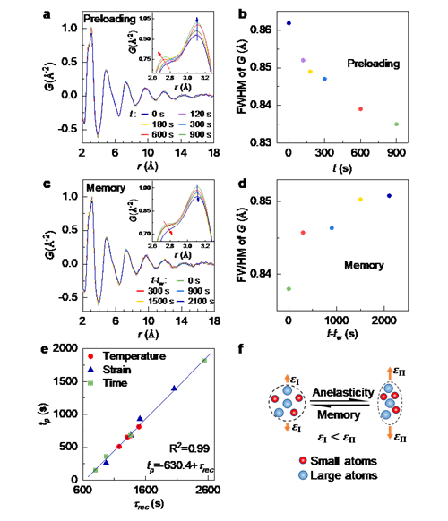 图5 原位拉伸高能同步辐射和可逆滞弹性弛豫分析,揭示应力记忆效应的本征是由小原子主导的局域可逆 弛豫