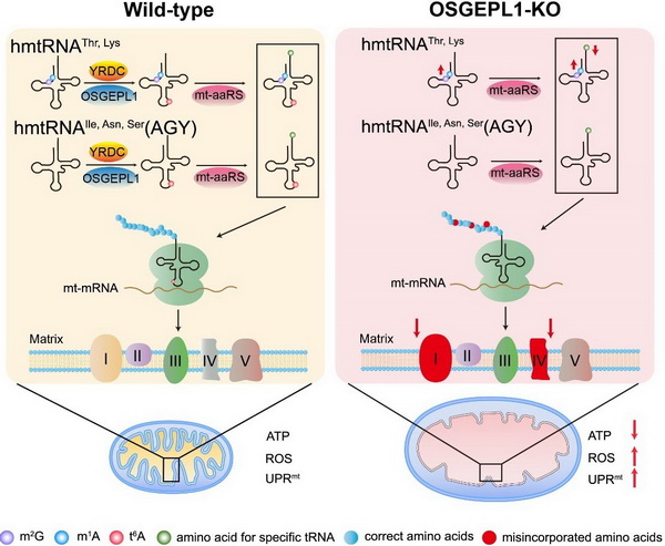转移核糖核酸(tRNA)在细胞内所有核酸分子中含有最多的转录后修饰,这些化学修饰对于稳定tRNA的结构和功能十分重要。其中,t6A修饰高度保守,仅发生在解码ANN(N = A, T, G, C)密码子的tRNA的37位腺嘌呤(t6A37)上。人线粒体tRNA t6A37修饰由YRDC与OSGEPL1 共同催化完成。研究组前期工作已经阐释OSGEPL1催化t6A37修饰的生化基础,但t6A37修饰在哺乳动物线粒体mRNA翻译过程中发挥的功能尚不清楚。