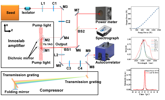 近期,中国科学院上海光学精密机械研究所强场激光物理国家重点实验室在高重频高功率超快激光器研究方面取得进展,相关成果以“417 W, 2.38 mJ Innoslab amplifier compressible to a high pulse quality 406 fs”为题发表于Optics Letters。