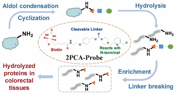 2024年2月29日,中国科学院上海药物研究所黄河团队和柳红团队合作,在国际学术期刊J Am Chem Soc上发表了题为“Advancing In-Depth N-Terminomics Detection with a Cleavable 2-Pyridinecarboxyaldehyde Probe”的研究论文。该研究设计合成了一种含有吡啶甲醛片段的可断裂分子探针2PCA-Probe,可实现对蛋白质N-端的深度富集检测。