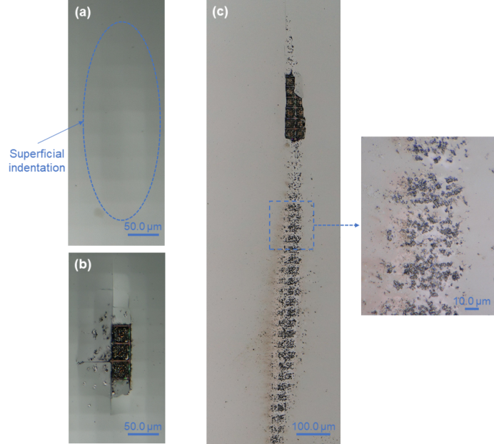 在该项工作中,研究人员通过数值模拟和实验探索初步揭示了GaAs/AlGaAs量子阱红外探测器的长波红外激光单脉冲辐照损伤特性。在简化和近似条件下,建立了探测器单脉冲激光辐照的热学和力学响应仿真模型,经数值计算获得了其热分解、熔融损伤、应力损伤的阈值。设计并开展了初步的辐照损伤实验研究,分析探测器在不同激光能量密度单脉冲激光辐照下的损伤形貌,并结合响应性能测试结果获得了探测器出现点损伤和线损伤的激光能量密度数据。