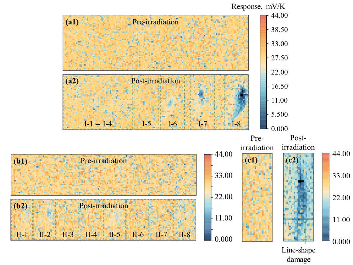 图2 量子阱红外探测器辐照区域内的损伤效应。