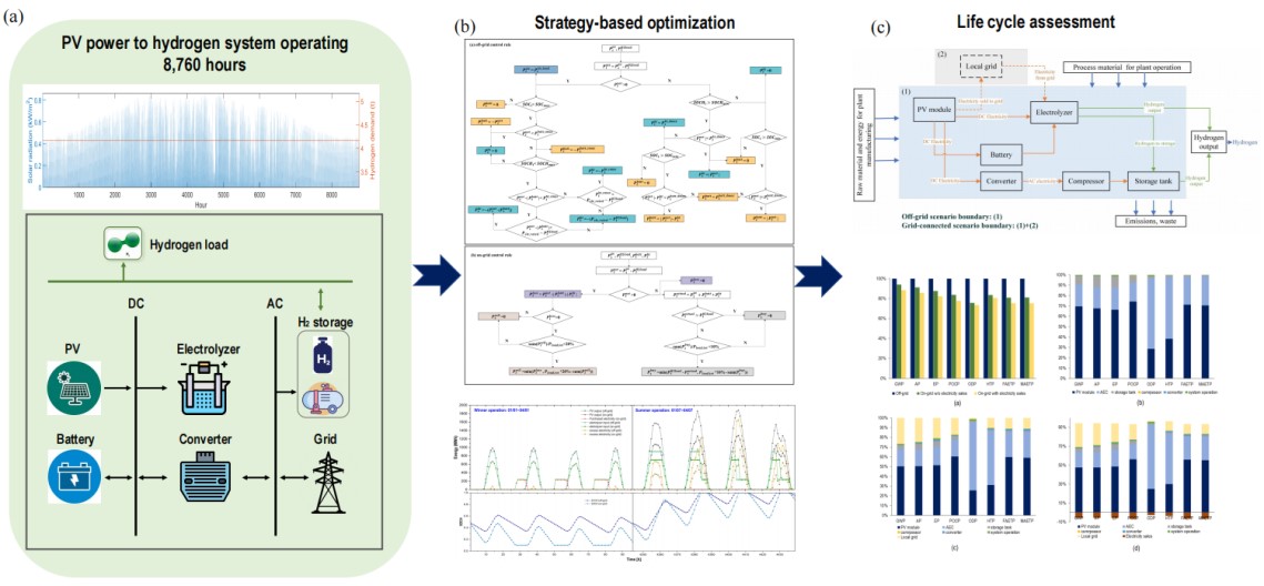 (a)光伏制氢系统 (b)制氢系统优化策略(c)制氢系统生命周期排放边界
